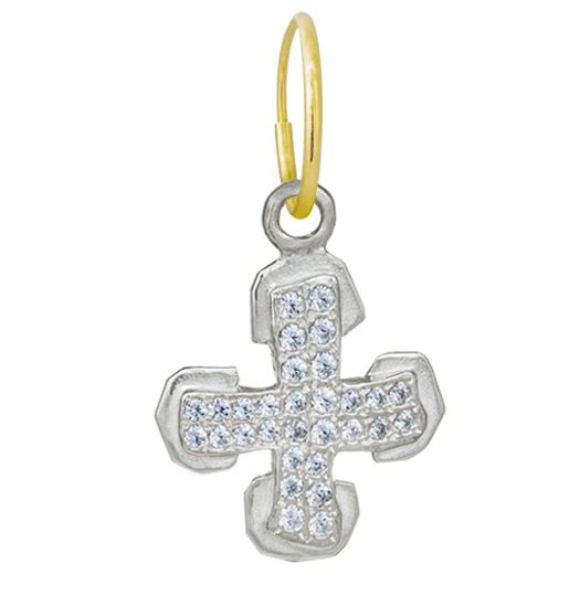 Sterling Silver Charm with Cubic Zironia Pavé floats on a 14k Gold Endless Hoop
