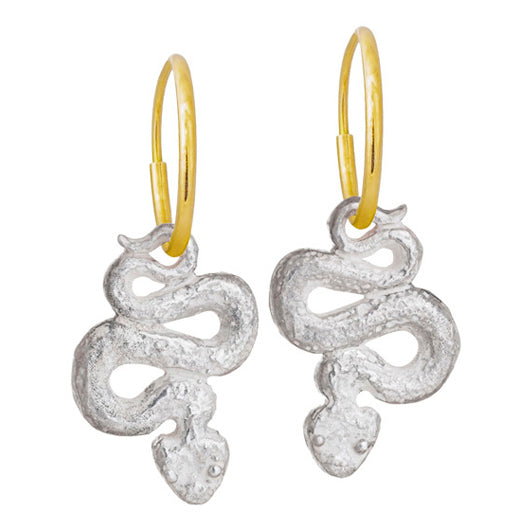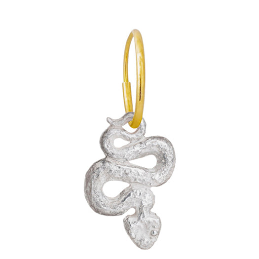 Sterling snake silver charm floats on a delicate 14K Gold Endless Hoop Earring