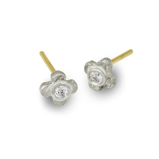 Sterling Silver Motif with Cubic Zironia +14k gold post back & butterfly clutch