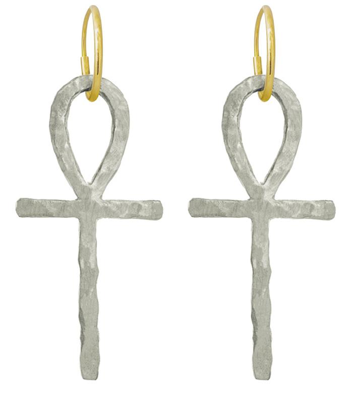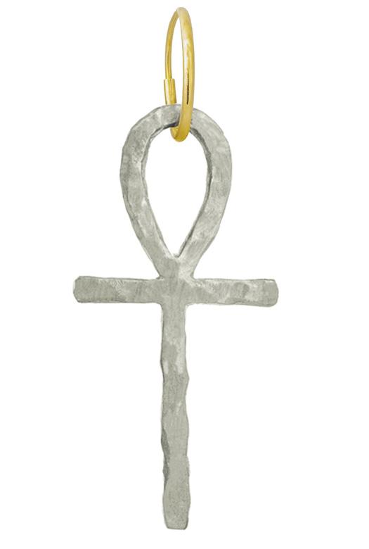 Sterling Silver Ankh Charm dangles on a delicate 14K Gold Endless Hoop