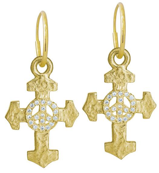 The Gold Pavé Peace Cross Earring, a smaller version of the pendant of the same name, from the Rock n' Roll Brevard heyday of the mid 80's in L.A.