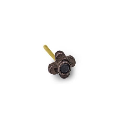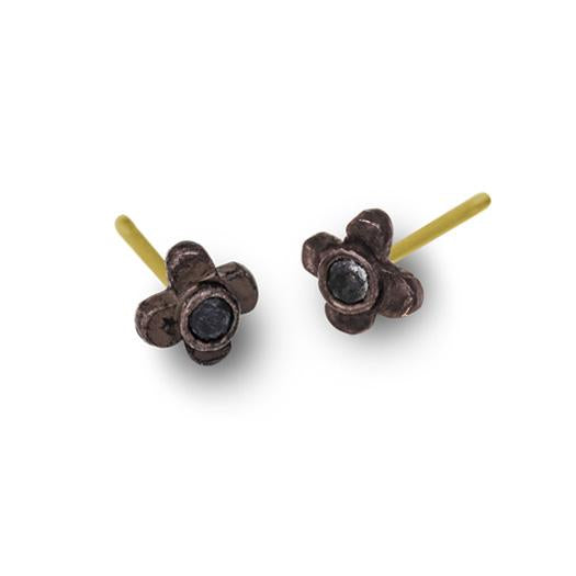 Oxidized Sterling Silver Micro Tiny Cross with Black Diamond +14k Gold Post Back and Butterfly clutch