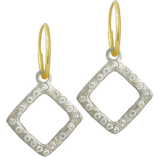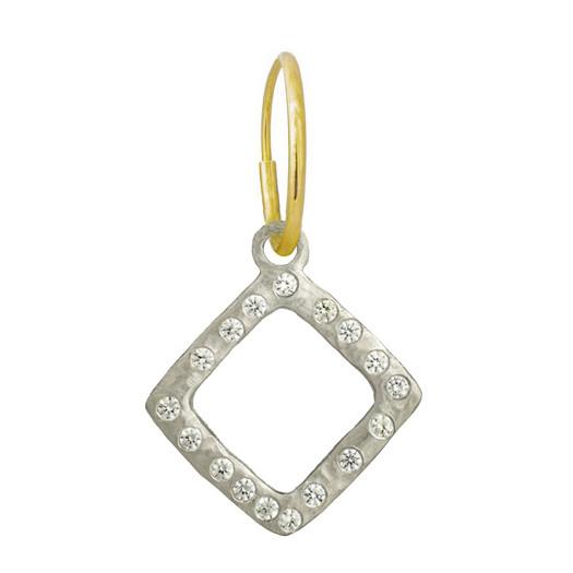 Sterling Silver Charm with 17 round Cubic Zirconia stones floats on a 14k Gold Endless Hoop
