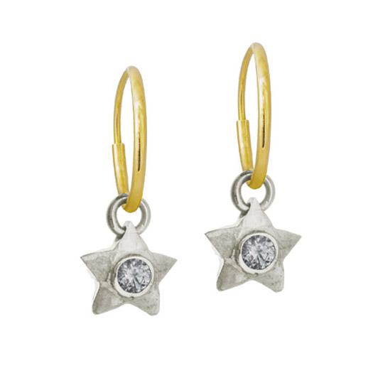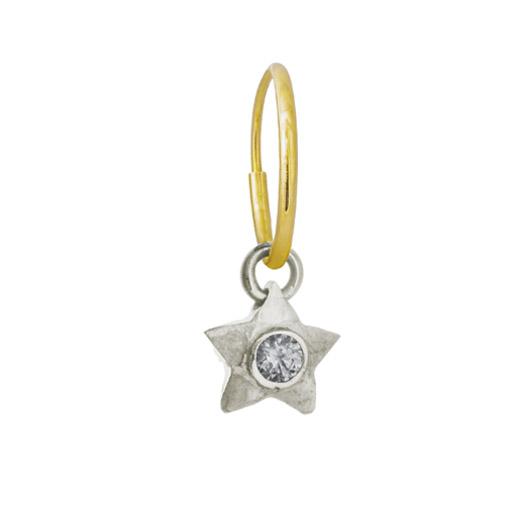 Sterling Silver Charm with 2 round Cubic Zirconia (one on each side) floats on a 14k Gold Endless Hoop