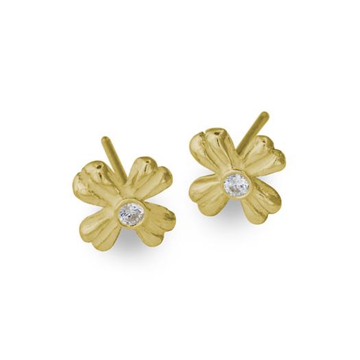 18k Gold Flower Motif with Cubic Zirconia + 14k Gold Post Back and Butterfly Clutch