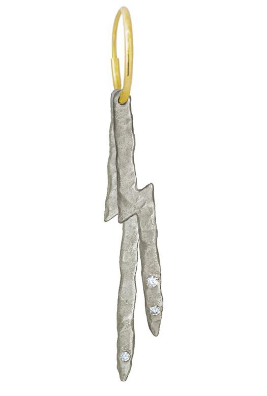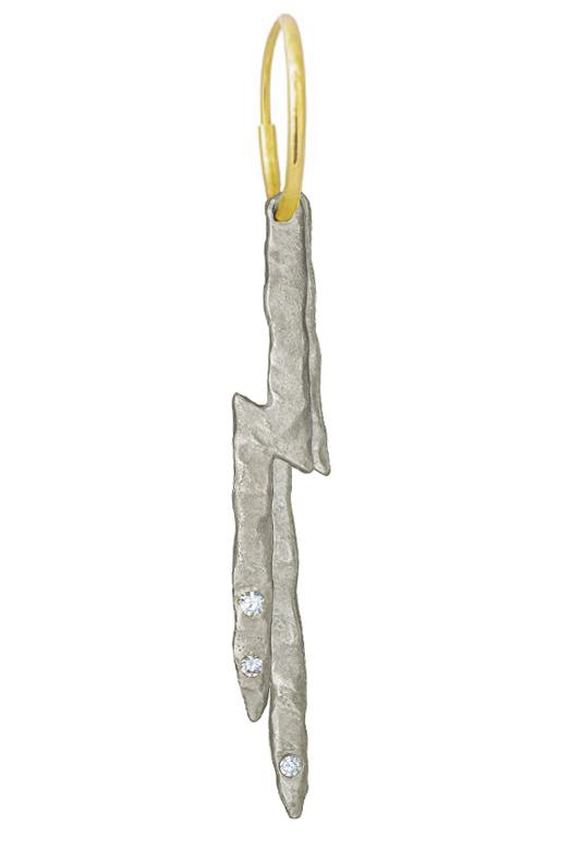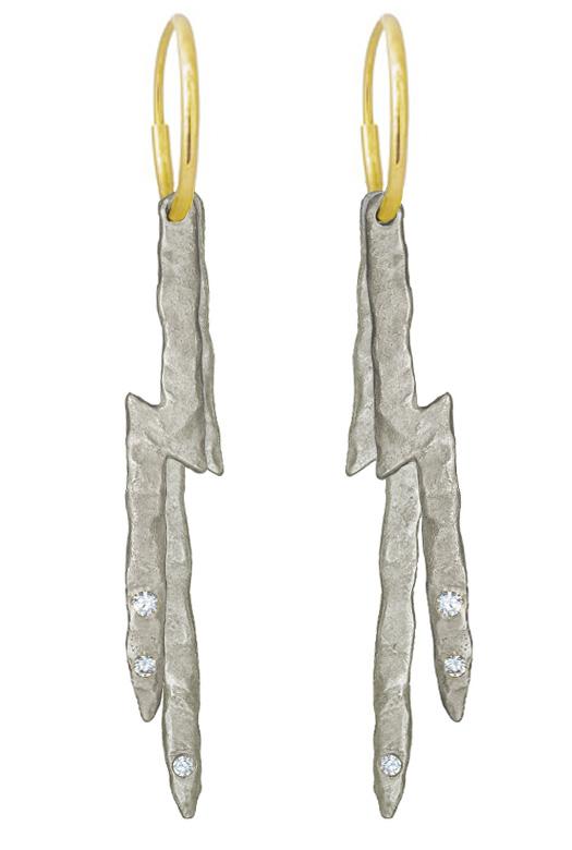 Our layered lightning bolt earring design, with 2 lightning bolt charms that swing independently as you move, is charged with an evocative energy that surges from within you. Offered here in sterling silver with stones.