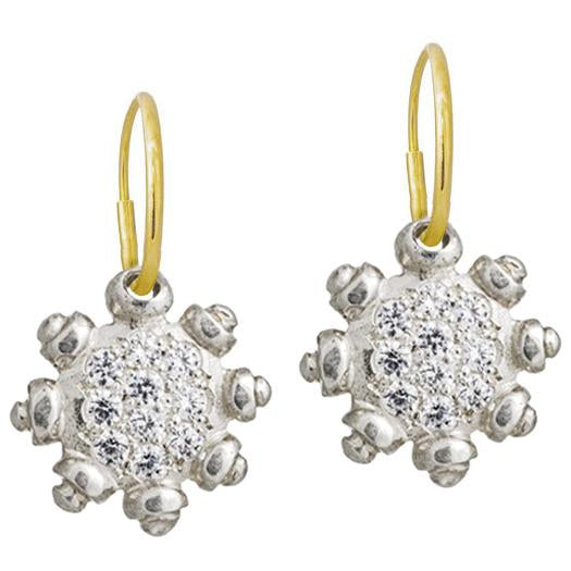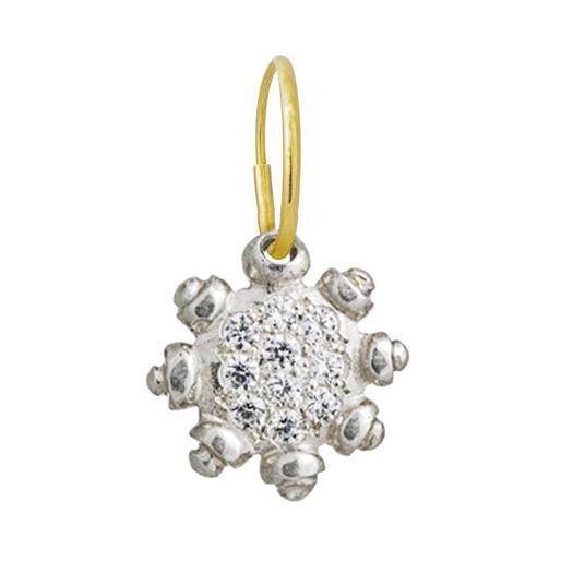 Sterling Silver Charm with Cubic Zirconia pavé floats of a 14k Gold Endless Hoop