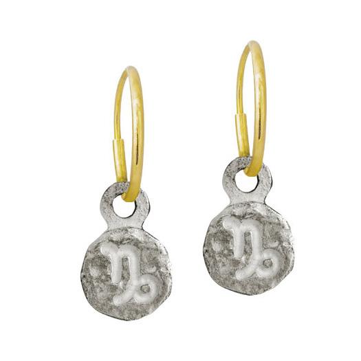 The glyph for our Tiny Capricorn Earring is the ancient symbol of a sea-goat, a mythical creature half goat and half fish. Being the tenth sign of the zodiac, Capricorn is ruled by powerful Saturn, the planet of structure and responsibility, but it is the exaltation of Mars, the planet of action and desire that keeps this sign in balance. Sassy. Intelligent. And Sexy. An irrepressible combination.